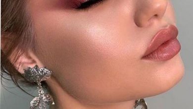 For the bride who loves a bit of edge, this look features a sleek, pulled-back hairstyle with bold, dramatic makeup. The burgundy lips are complemented by dark, smokey eyes and sharp eyeliner. This look is particularly stunning for brides with blue eyes and a flair for modern, edgy styles.