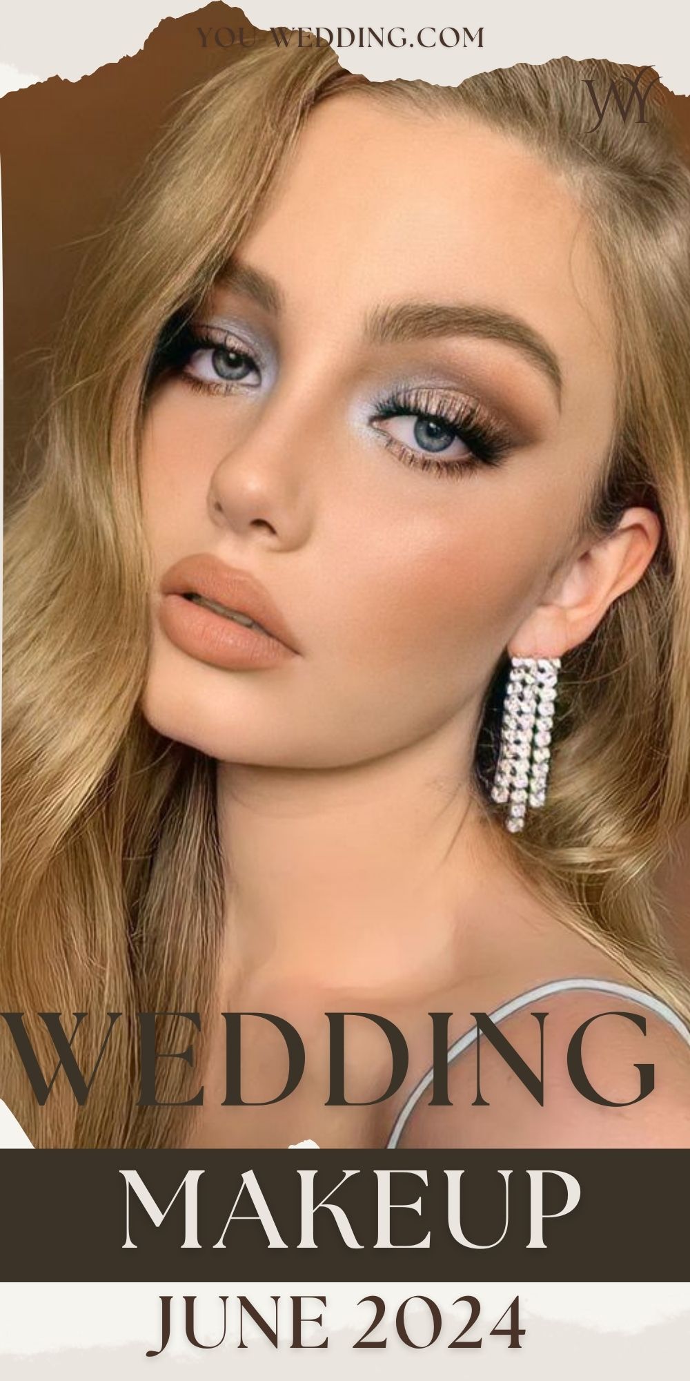 With a sophisticated updo and a tiara, this look embodies regal elegance. The red lips add a touch of boldness, while the eye makeup remains soft and natural with perfectly defined lashes. Suitable for brides with brown eyes, this makeup enhances natural features while maintaining a royal allure.